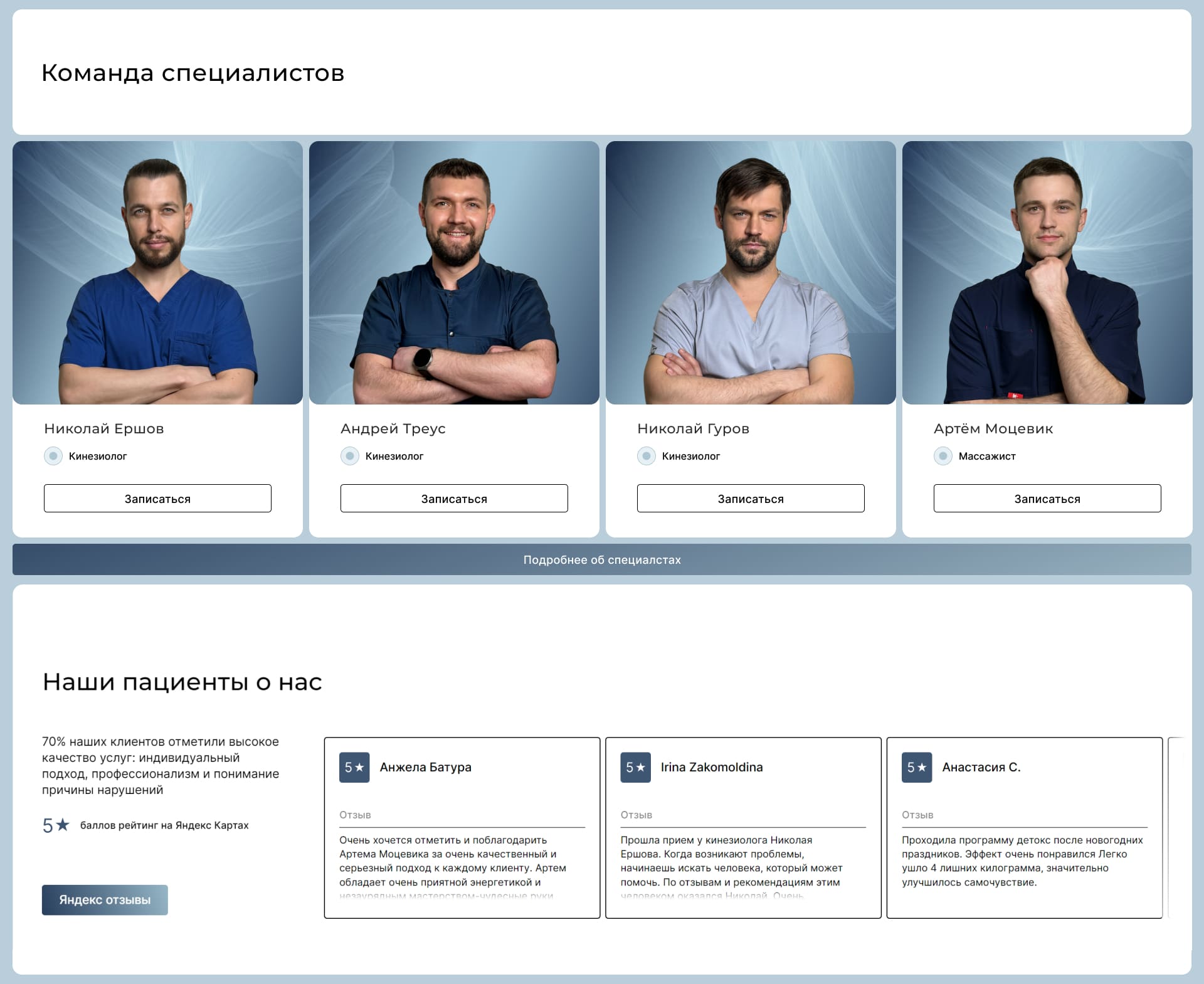 Один из лучших реабилитационных центров кинезиологии в Москве. Специализированная команда оказывает комплекс естественных методов оздоровления, позволяющий устранить жалобу и причину боли/заболевания. Многие клиенты отмечают данную компанию как лучшую и советуют многим к посещению.